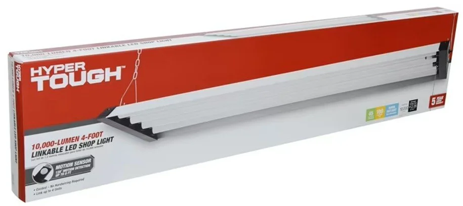 I recently found a very reasonably priced LED shop light fixture at my local Walmart that seems to be just what I needed to add the grow lights for my new seedling racks. With output of 10,000 lumens at 100 watts and 5000K color temperature they are just what I was looking for. And at $45.98 I could not pass up the deal.
